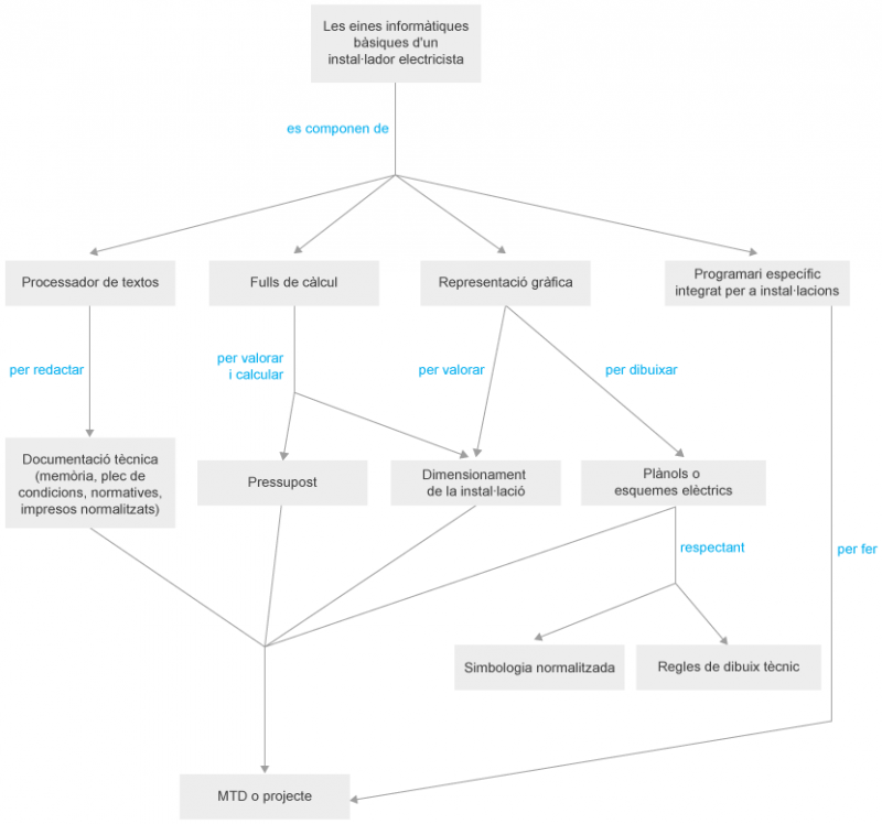 L'instal·lador ha de saber fer la documentació tècnica, el pressupost i el dimensionament i la valoració d’una instal·lació elèctrica fent servir programes informàtics. Tot això s'haurà d'incloure en un projecte o bé en una MTD (memòria tècnica de disseny).