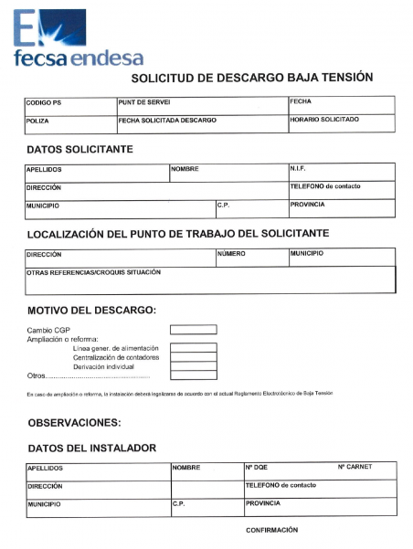 Sol·licitud de descàrrec de baixa tensió