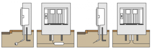 Les primeres dues figures d'esquerra a dreta corresponen a un embrancament subterrani en derivació, i les dues següents, a un embrancament subterrani amb entrada i sortida o de bucle.