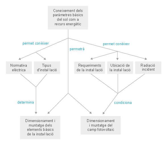 Reconèixer i dimensionar els elements bàsics de les instal·lacions solars fotovoltaiques autònomes i de connexió a la xarxa.