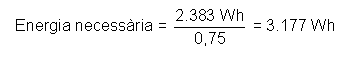 En aquest cas tindrem en compte que el subministrament de corrent es farà a 220 V CA; per tant, apliquem un rendiment global de la instal·lació de 0,75 per tal d'obtenir l'energia necessària que cal produir.