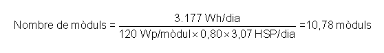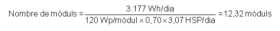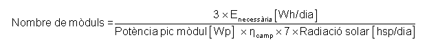 El càlcul dels mòduls necessaris en una instal·lació autònoma quedarà determinat per l'expressió següent: