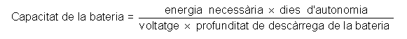 Un cop determinada l'autonomia, podem calcular la capacitat de la bateria amb l'expressió següent:
