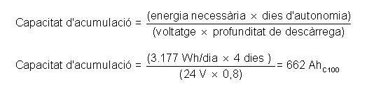 En el nostre cas determinarem la capacitat de la bateria per a una autonomia de quatre dies i emprant bateries estacionàries de darrera generació.